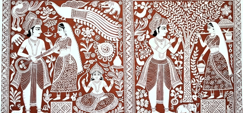 Meenas share much with mainstream Rajasthani and Hindu traditions but preserve distinct customs. During weddings, they practice Morni Mandana, where colorful peacock motifs are drawn on walls – symbols of prosperity and joy.